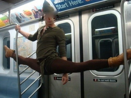 No man, no one wants to do the limbo under your crotch to get off at our respective stops