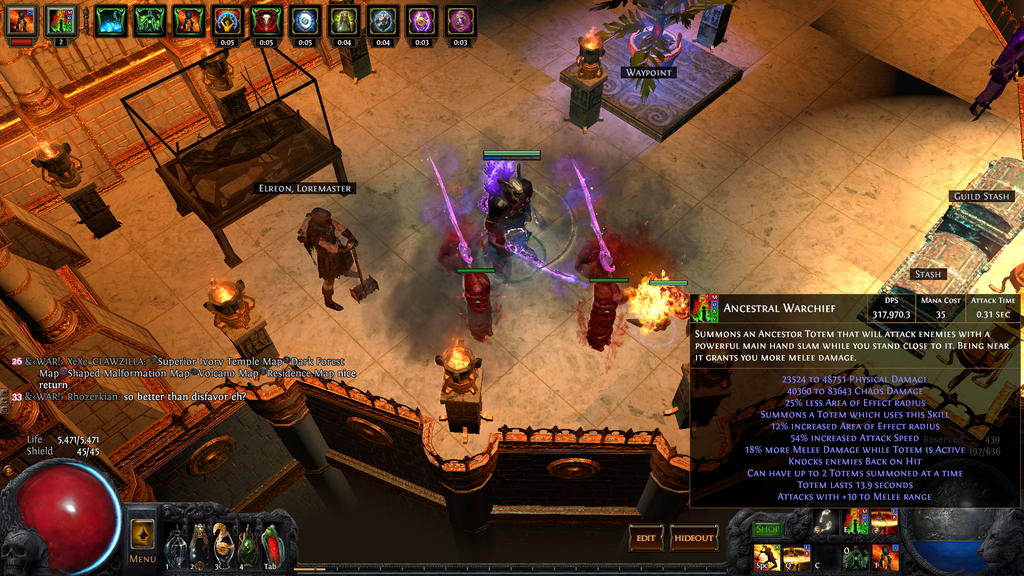 ![]() Hi everyone. This is an idea i had for 2handed warchiefs that could surpass disfavour. I wanted to use starforge and started thinking without elemental damage, how could i get the dps past disfavour? No hatred, No Hoa, No Toh . The answer ? MINGS HEART X 2. Each ring adds 20% of your physical damage as extra chaos damage so this totals 40% dmg boost as CHAOS. Also Sins rebirth and atziri flasks ARE HUGE, the first grants unholy might (30% of phys as extra chaos) and the second is 25% of phys as extra chaos. Ultimately this turned into even more chaos damage than physical, which is awesome. With flasks, if you look closely at the image above, we get to 317k per totem and 60-70% of that damage is CHAOS!!! . we get 100% chance to poison from snakebites and pacifism jewels and because we are pure chaos/phys every ounce of our dps goes towards poison dmg. Going from disfavour to this build i had to get a belly of beast instead of brass dome and this definitely lost tankiness. I managed to keep 5700 life AFTER ming reduction which is what i had previously. What i did to counteract the loss of armor was grab the most armor i could on my other slots (vangaurd belt, high armor helm and boot, armor roll on amulet etc) and i ran defensive auras which can be aa + either grace or determination depending on your gear. Im getting a little bit more out of grace atm so im running about 50-60% phys reduction when ec are up and 40+ chance to evade with 5700 life. Lastly Jewel slots are important to maximize this build. I have 7 total now 3 are for pacifism poison trick and 4 are for shock Life and any dps you can add. Try for area or totem on your jewels as those damages will boost phys chaos and poison damages. Physical or chaos damage if you cant find those. Gear