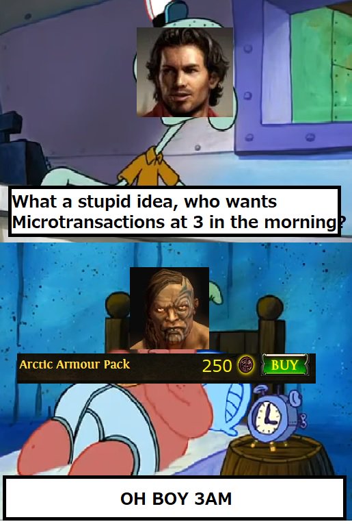 Most of them are for utterly suck ass MTXs. The stuff I'm seeing I would never buy anyway regardless so being offered this 'ohh, sale!' reduction is not going to motivate me to buy them. When will all portal effects show up? All weapon effects? All (ALL!) skill effects not just the effects for skills barely used anymore? And - why can't you choose to pair weapon effects in the MTX interface?? [Edit] *facepalm* Lavender/Emerald/ect weapon effects?? Really? Who has touched those since like... 2012? What GGG should've done was expand the sale to 4 hours, with new items added and old items dropped every hour. That way people who ... you know, have to do something like work or sleep can participate. Patch Notes 3.15: Fixed a bug where players believed the game was playable. This has been corrected and made retroactive. Patch Notes 3.19: Fixed a bug where players adapted to 3.15. This bug cannot be corrected, so we have implemented a 90% reduction in item access as a punishment. Last edited by BlaqWolf#1151 on Nov 25, 2017, 1:35:41 PM