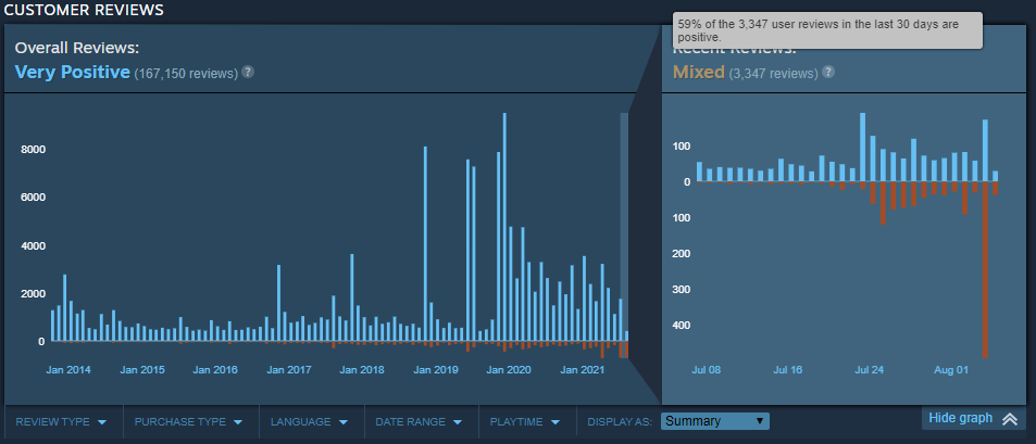 If childish or not doesn't matter, it doesn't seem like GGG cares to give any responses on the forums/reddit, so might as well use steam as an outlet. The review bombing happening is definitely something you could say is happenning because of GGG' negligence interacting with the community.