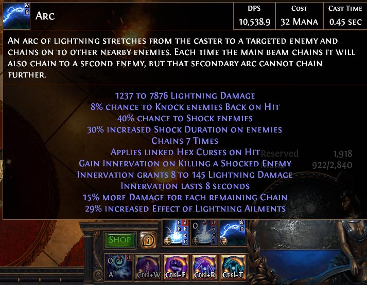 " Challenge accepted. This is the map I am about to run: ![]() This is my gear set up: ![]() She's rigged for Vaal Stormcall. Instead I'll be playing exclusively with the Vaal Arc I use to deliver Conductivity and gain Innervate - so a four link. The Gems are: - Vaal Arc - Hexttouch Support - Innervate Support - Conductivity Here are the gloves the skill gems are in: ![]() Here is the tooltip on my arc: ![]() No mirror gear, no influenced items. This equipment has not been considered "good" since Legacy league with the exception of the belt. __________________________________________ Now, if you gentlement will give me a few minutes, I am going to kill every single thing in this corrupt T-16 map with a 4-link. Last edited by Sabranic_SilverDeth#2793 on Aug 17, 2021, 9:33:59 PM