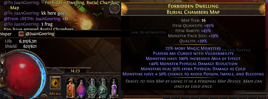 I will preface this by saying that I don't play PoE to run maps. I only do so occasionally for fun on my shitty boutique characters. I mostly just flip antiques and speculate in the items/currency markets. But all of my friends are complaining about MOB drops cratering, (and quitting - which annoys me), so I grabbed a T-16 burial chambers from a quad and ran it to test.
