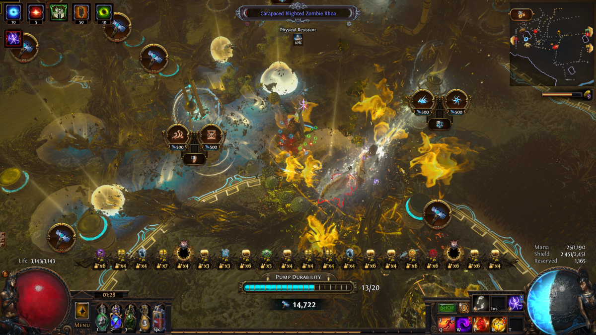 There is no Divine shrine nearby and no proxy shield. The only way to end the encounter is to run away from it - successfully failing the encounter, cuz they'd still damage the pump. There were multiple occasions of that happening. Lags and crashes was not enough, now you ascended to a different level of bullshittery - straight up bricking the encounters. Congratz GGG.