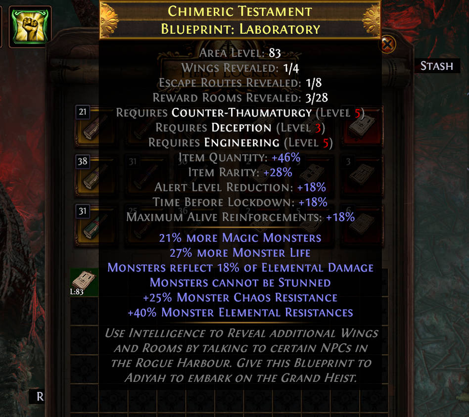 i wonder that you didnt take the chance to rework the basic Grand Heist System as you did update the rewards this League. I mean its so unusal for POE that there is something where the rewards do not increase by increasing the Risk ? Furthermore its strange to me now after this update that it even more doesnt matter which Blueprint you run ?! Also this is very untypical for POE as its normal that there are more worthy ones and more bad ones , or lets say less valuable but different rewards. Its so stupid that every low tier Character can just do the Grand Heists scour them and run them white with same rewards without the need to kill any monsters... . I cant tell you how it should be changed dont have any really good idea, but how it is right now its bad. Probably just the Map mods should influence the Heist Target Value as well. At least the Stack size, but also the rarity of the grand heist targets. Regards Last bumped on Jan 14, 2024, 11:58:05 AM
