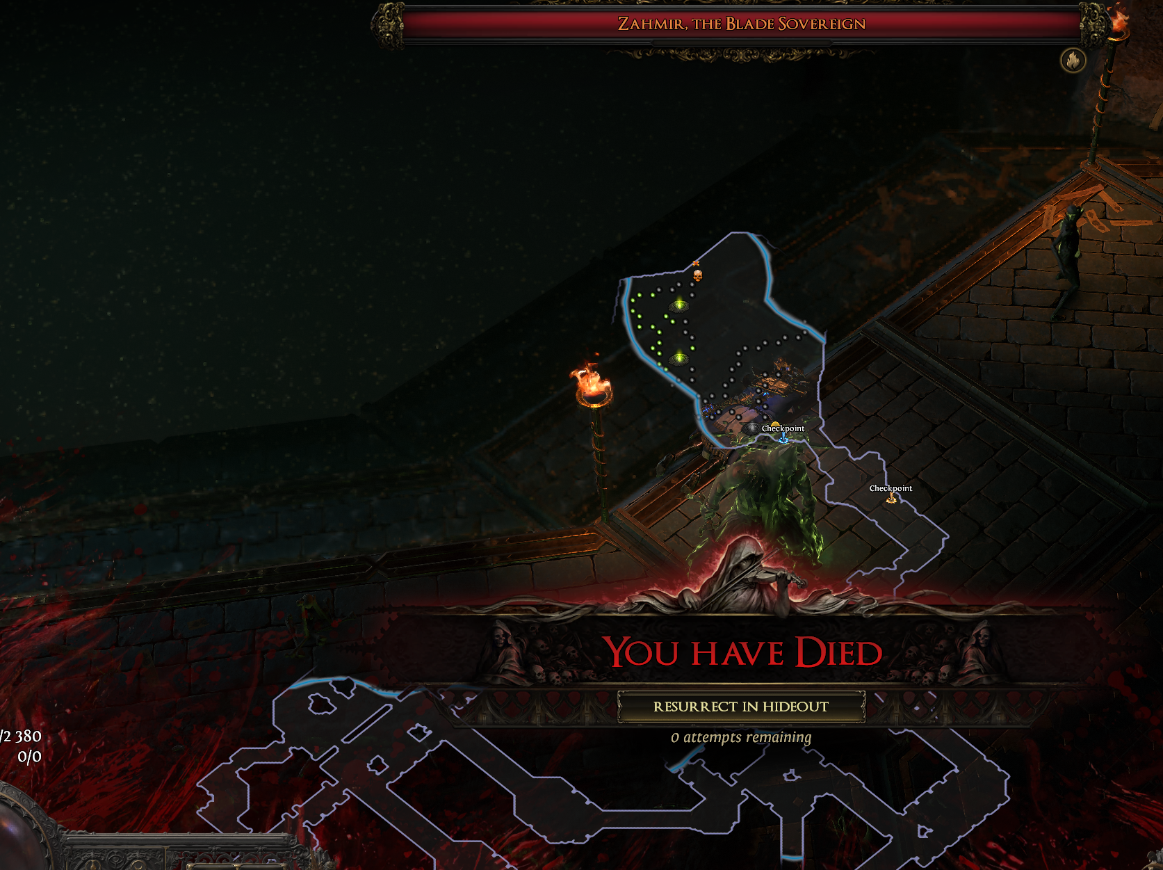 on this map then you go to the boss room Zahmir, you walk very slow and all your skills dosent work, like in the campaigh, and in this room in my case - spawn the abyss and 1 rare mob, and of course you DIE and lose your attempt bacuse you cant do anything, and you have 2 choice - leave the map or die, thats all