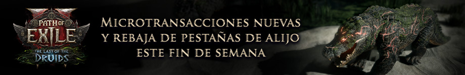 Microtransacciones nuevas para Path of Exile 2Esta semana hemos agregado microtransacciones nuevas para Path of Exile 2, incluidos sets de armadura, efectos para habilidades y efectos para transformación. Echa un vistazo a los siguientes videos y compra lo que quieras aquí o presionando “M” dentro del juego para entrar a la tienda.Paquete de armadura de crocoliscoAspecto de Tortuga para báculoAspecto de Crocolisco para transformación en osoAspecto de Crocolisco para transformación en guivernoAspecto de Crocolisco para transformación en loboEfecto de murciélago para transformación en guivernoPaquete de armadura de Vidente temporal vaalEfecto abisal para TornadoEfecto Radiante para TornadoRebaja de pestañas de alijo este fin de semanaEste fin de semana habrá rebaja de pestañas de alijo, donde todos los tipos de pestaña de alijo de la tienda tendrán descuentos. Puedes ver la selección completa de pestañas en oferta aquí. La rebaja finaliza el 23 de diciembre a la 1 p. m. NZT (Dec 22, 2025 7:00 PM (EST) en tu horario local).¡Gracias por tu apoyo! |
