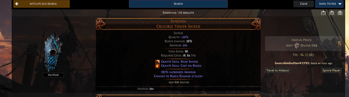 I got a Svalinn shield that says it takes 0% damage from blocked hits and its not seeming to appear on the trade site. No other items pop up if I put 0 in the max box of the filter either, as well as all the ones on the trade site only go down to 1. Is this a bug with the trade site?