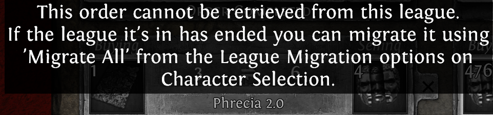 I've tried clicking the ">>" button on the character selection screen as well but there is no option to migrate phrecia, only SSF and HCSSF. I don't want to migrate my SSF/HCSSF chars to trade. How do I free up those Faustus trades? Last bumped on Mar 4, 2026, 10:41:19 PM