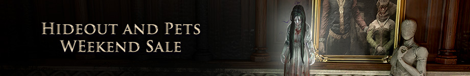 This weekend, we're having a huge sale on Hideouts and Pets! Design your dream refuge and acquire your new trusted companion by checking out the full list of discounted microtransactions here.
